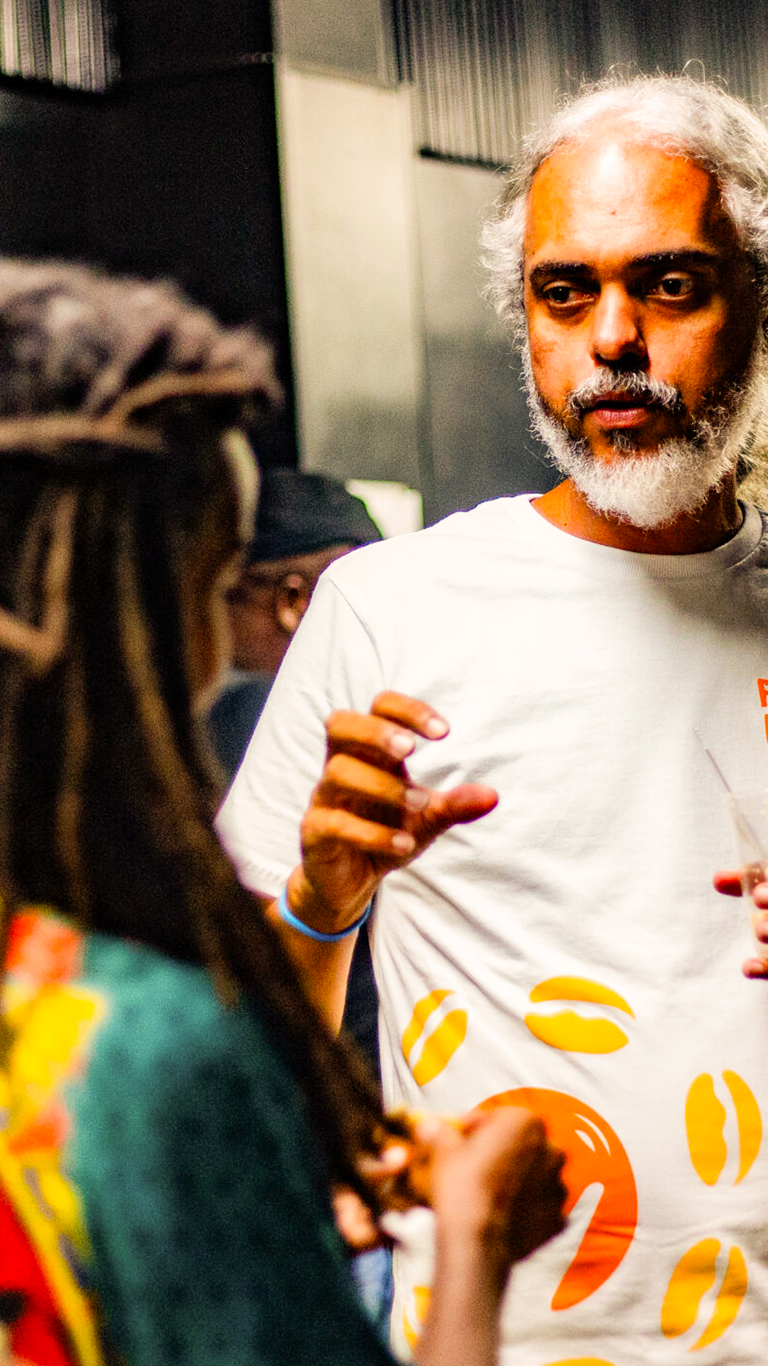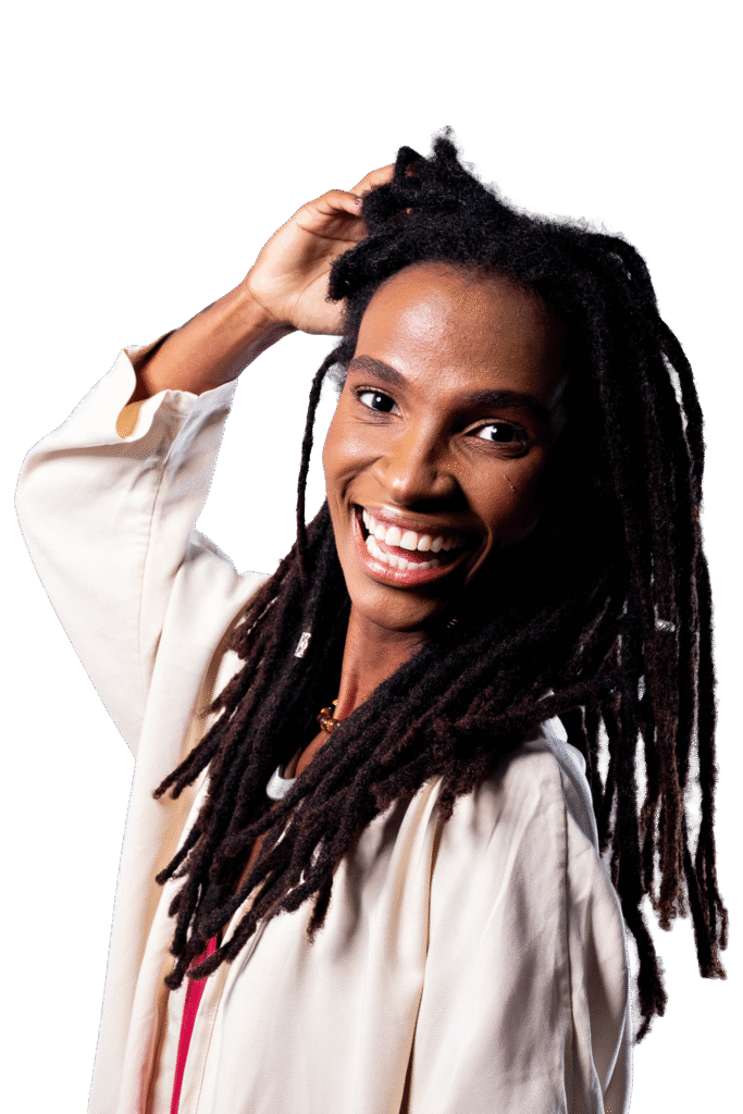 Comunicadora por formação e multiartista por natureza, há mais de 20 anos costura caminhos entre a arte, o corpo e a cultura. É percussionista, capoeirista, produtora cultural, designer, assessora de comunicação e facilitadora de práticas de yoga — tudo isso atravessado por um fazer que é coletivo, sensível e potente.