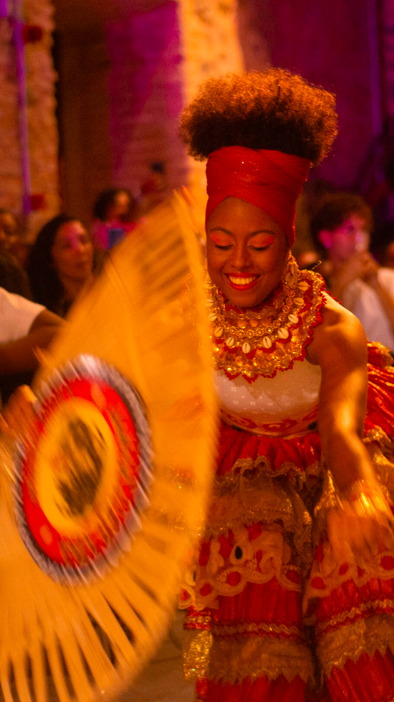 Juliana Almeida é tambor que pulsa, corpo que dança, palavra que comunica. Mulher negra em diáspora, filha de Salvador-BA, trazendo na pele e na trajetória suas raízes e encantos ancestrais.